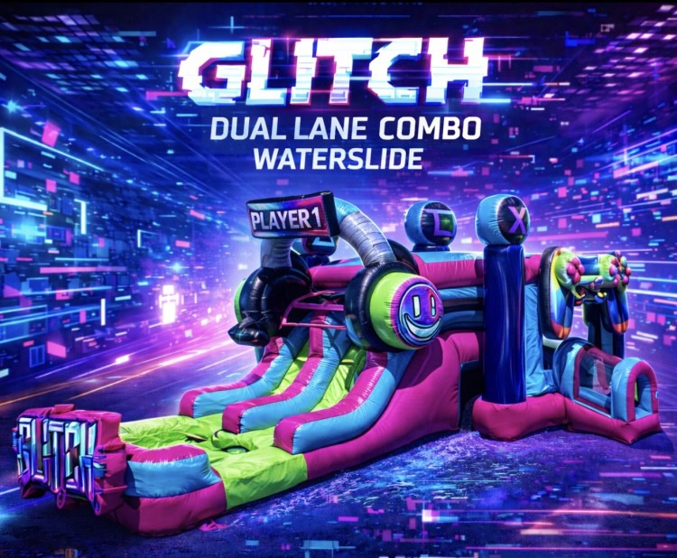 Rent the Glitch Gamer Dual Lane Combo Wet/Dry today and elevate your celebration with an unforgettable experience that will leave everyone talking!Glitch Gamer Dual Lane Combo Wet Dry Slide, with Gaming chair!