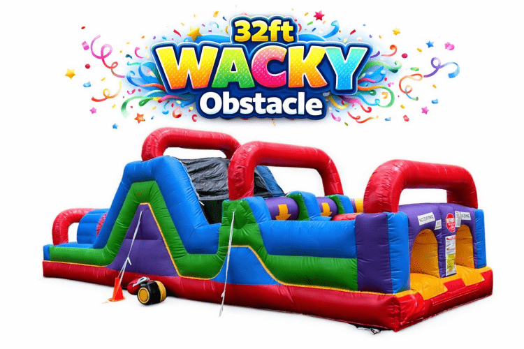 Dive into 32 feet of silly, colorful fun with the 32 Ft Wacky 7-Element Obstacle Course — a lively, kid-friendly inflatable built for nonstop action. Designed for younger children at birthday parties, school events, or backyard carnivals, this course packs tunnels, pop-up obstacles, multiple squeeze passages, climbing walls, and twin 9-foot slides into one bright, safe unit. It’s cleaned and sanitized before every rental and arrives with a blower, extension cord, and safety stakes for secure setup. Follow manufacturer occupancy guidance (about 5–6 kids of similar size at once) and make sure you have enough space, an electrical outlet within 50 feet, and a water source if you plan to use a wet configuration. Rain reschedules are allowed with 48 hours’ notice, and delivery fees are calculated at checkout for South Alabama, Mississippi, and nearby areas. Perfect for energetic little racers who love to crawl, climb, squeeze, and speed down the slide again and again.