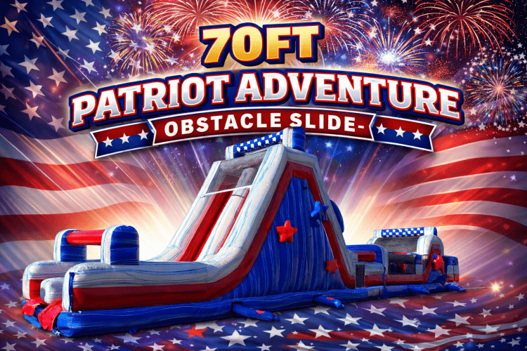 Towering at an impressive 70 feet in length, the Patriot Adventure Obstacle Slide is a show-stopping rental built to thrill and challenge guests of many ages. This expansive unit combines an action-packed obstacle course with a fast, fun slide finish: participants navigate barriers and climbing elements before launching down the long slide for an exciting exit. Designed for group use at large events, team-building days, school functions, and community festivals, it delivers high-capacity entertainment while keeping safety and flow in mind. The bold “Patriot” theme gives it a spirited, eye-catching look that helps it become the centerpiece of any outdoor celebration. Ideal for organizers who want a dramatic, active attraction that encourages friendly competition and keeps crowds engaged for hours.