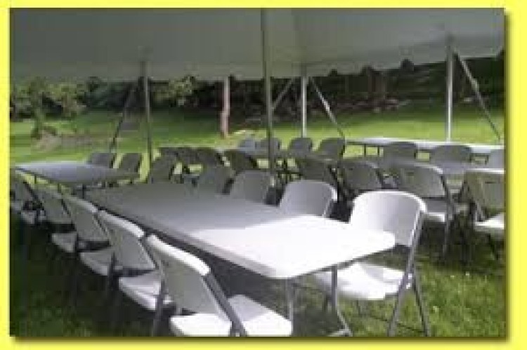 6FT TABLE20 x 40 Tent 8 Tables 48 Chairs:6FT TABLE1Dropdown83162387_3162409110A sturdy 6-foot folding table built for rentals: a long, durable tabletop on a lightweight metal frame that folds flat for easy transport and storage. It’s the go-to surface for buffets, registration, craft stations, gift displays, or extra seating under a tent, comfortably seating three to four people per side depending on chair size. The wipe-clean top resists spills and marks during events, while the stable legs and cross-bracing keep it steady on grass, pavement, or indoors. Simple to set up and break down, this table pairs neatly with chair and tent packages and works equally well for parties, meetings, vendor booths, or backyard gatherings. 6 Foot Rectangle Table linen20 x 40 Tent 8 Tables 48 Chairs:6 Foot Rectangle Table linen103162387_3162409_31624290000A crisp, full-coverage linen tailored for a standard 6-foot rectangular table (90" x 132"), this rental cloth drapes smoothly to create an elegant, finished look for banquets, trade shows, or backyard celebrations — hiding legs and under-table storage while offering a clean, polished surface that instantly elevates your setup. White Plastic Folding Chairs20 x 40 Tent 8 Tables 48 Chairs:White Plastic Folding Chairs1Dropdown483162387_3162407110White Plastic Folding Chairs – Lightweight, stackable seating designed for casual events and gatherings. Each chair supports up to 350 lbs and folds flat for easy delivery, storage, and transport. Chairs are delivered stacked at the site; setup and placement are not included, and returned chairs should be stacked and in the same condition as delivered to avoid extra service fees. Durable, easy-to-clean surfaces make them ideal for backyard parties, tented events, and banquet-style seating as part of larger seating packages or tent setups.